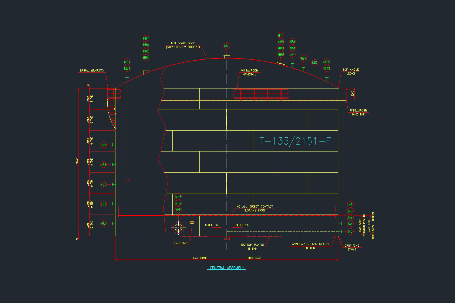 Design and calculation of off-shore and on-shore plants, storage tanks, steel structures, skids